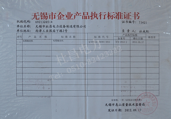 產(chǎn)品標(biāo)準(zhǔn)證書