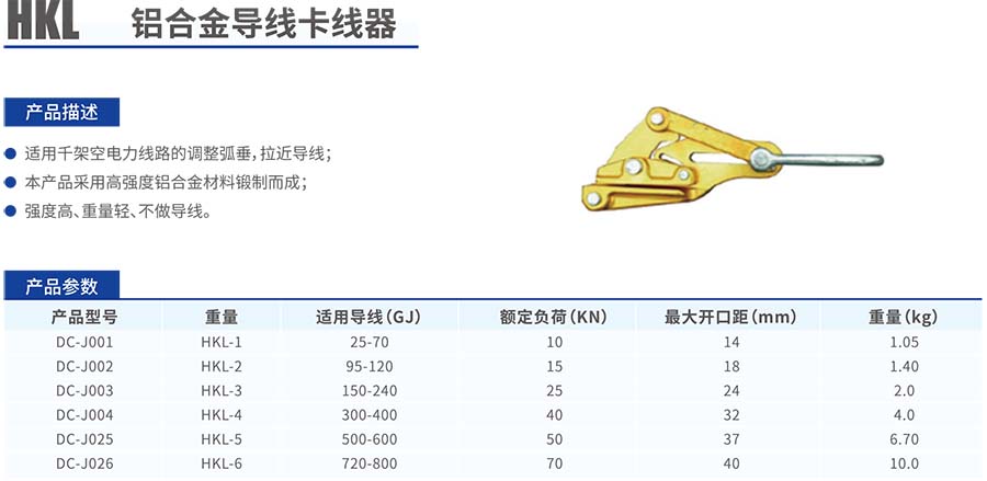 HJKL鋁合金絕緣導(dǎo)線卡線器