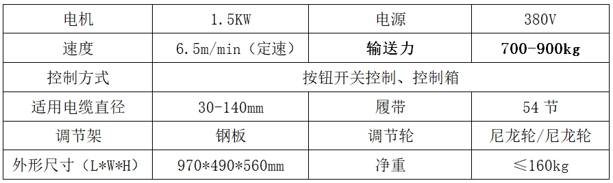 本款輸送機適用于110KV以內電纜敷設。電纜敷設完成側面移出,適用于橋架,隧道狹小空間使用。配套電氣箱可聯動控制,聯動方式有線/無線聯動、變速箱免保養。